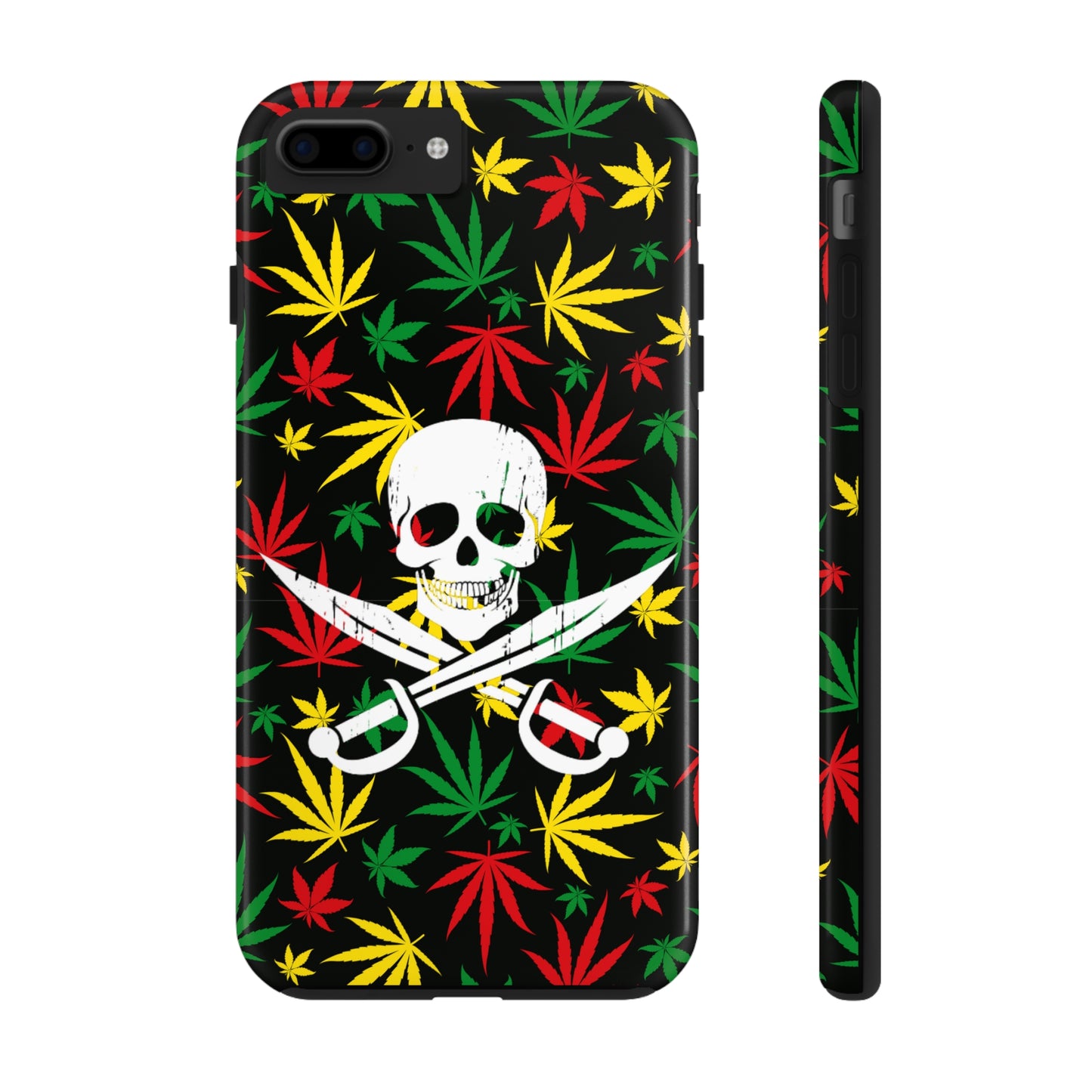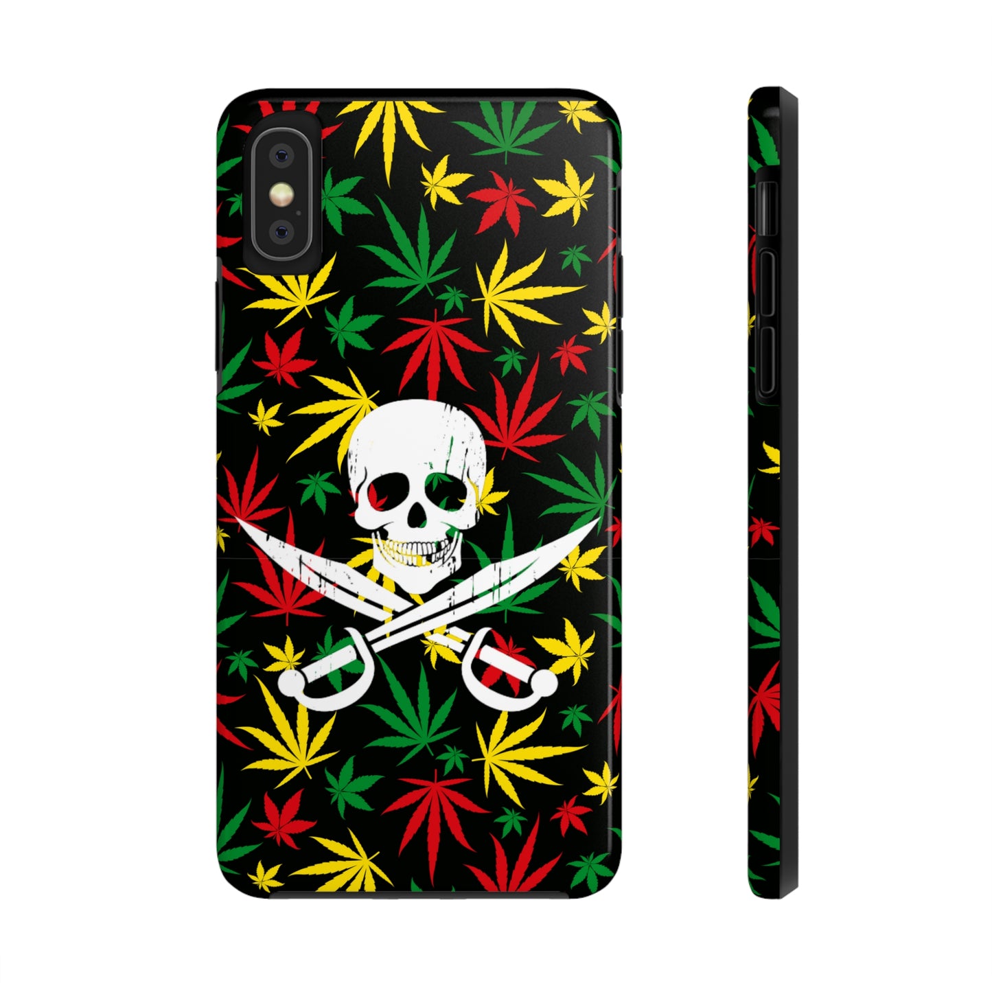 420 skull & crossbones tough phone case cannabis and jolly roger red gold and green weed skull phone case 420 gift for stoner pirates