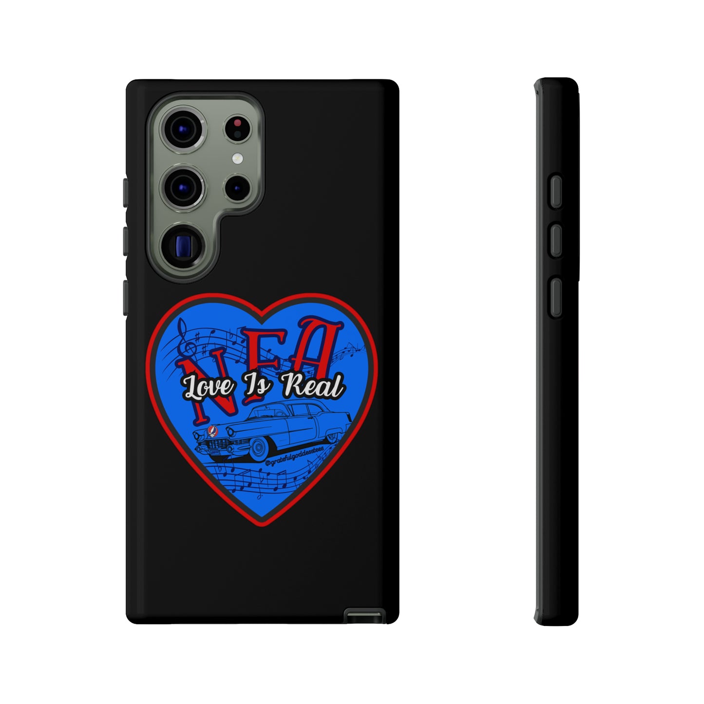 Grateful Dead NFA Personalized Apple iPhone, Samsung Galaxy, and Google Pixel devices with premium-quality custom Desdhead protective phone cases. Every case has double layers for extra durability and protection. The outer polycarbonate shell will resist daily impacts. Love is Real Not Fade Away.